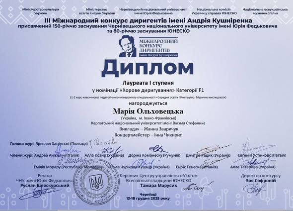 ОЛЬХОВЕЦЬКА МАРІЯ (клас доц. Зваричук Ж.Й.)